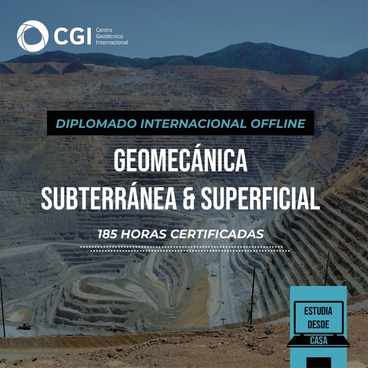 Los Diplomados del CGI tienen como propósito facilitar el aprendizaje de teorías, técnicas y herramientas de un tema específico (geomecanica y geotécnia), con la duración y formalidad necesaria para garantizar la adquisición y suficiencia de conocimientos.
